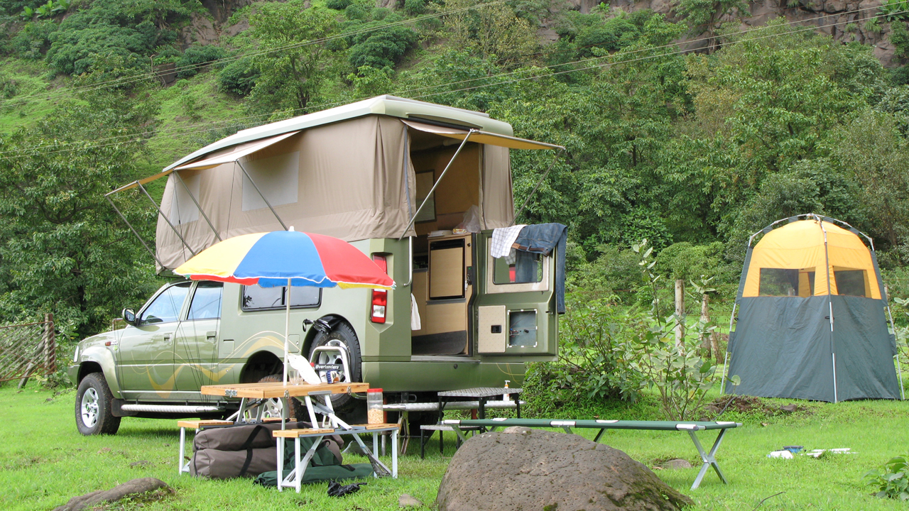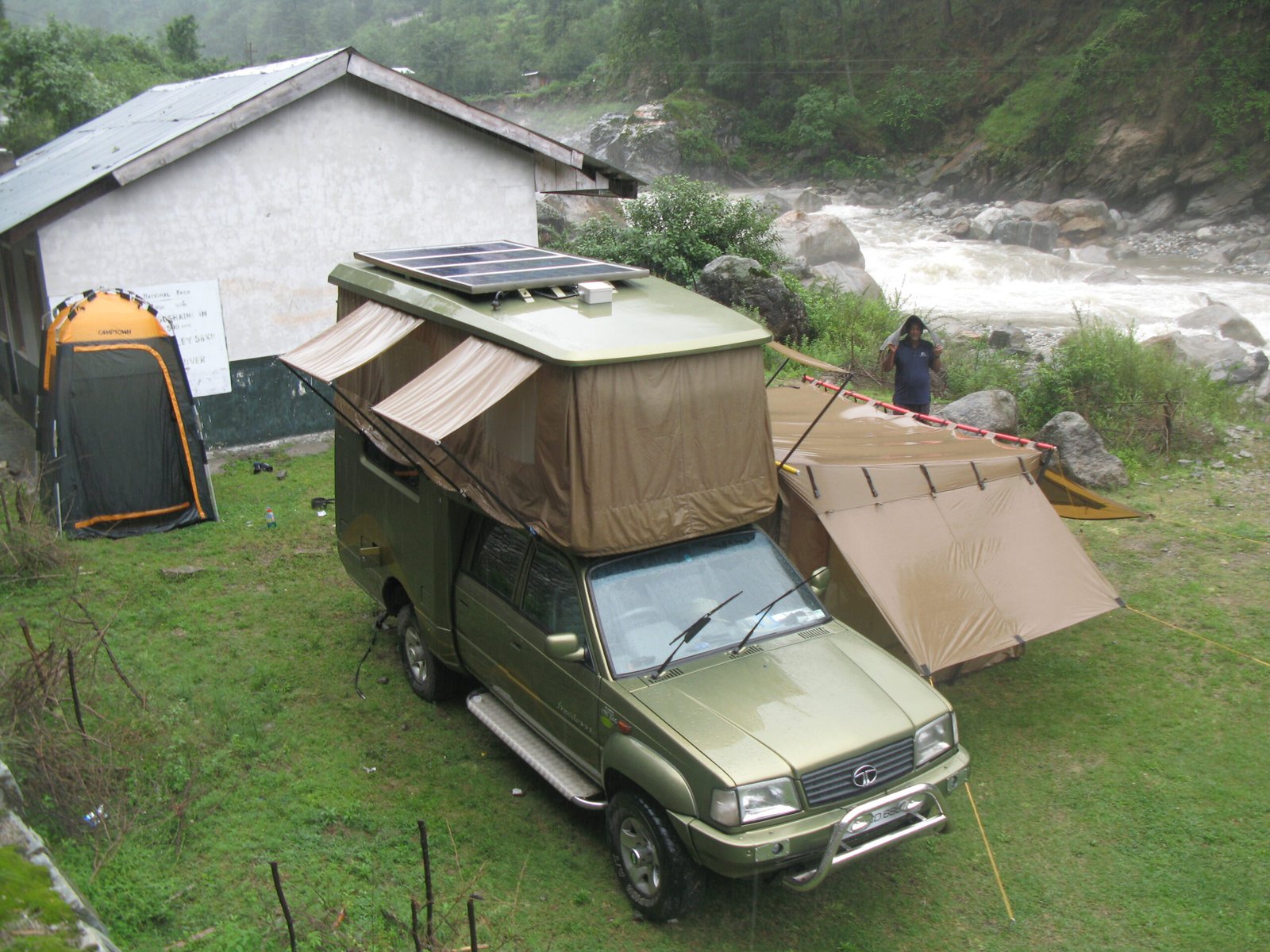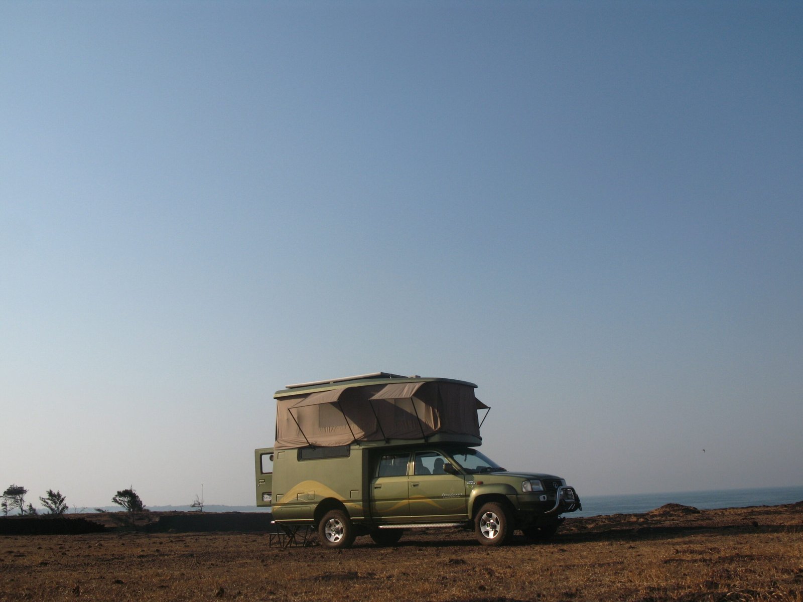 At the press of a button the rof of the campervan goes up and a room with beds, basin, flat TV is created, as you settle down for a night in the dsolate mountains